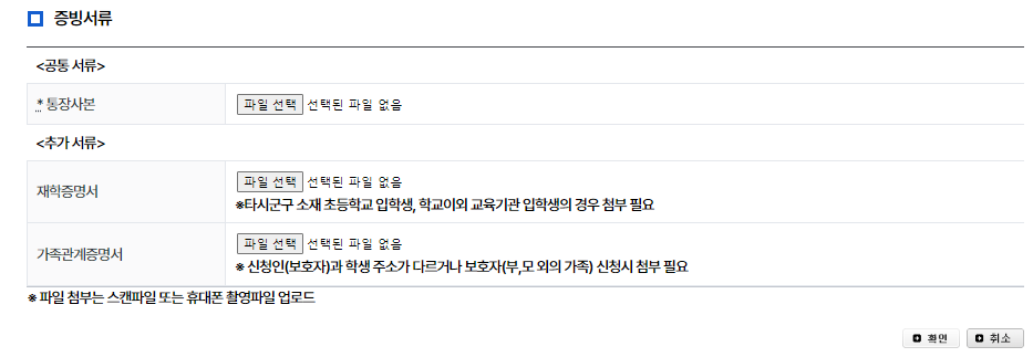 *파일 첨부는 스캔 파일 또는 휴대폰 촬영 파일을 업로드하면 됩니다.