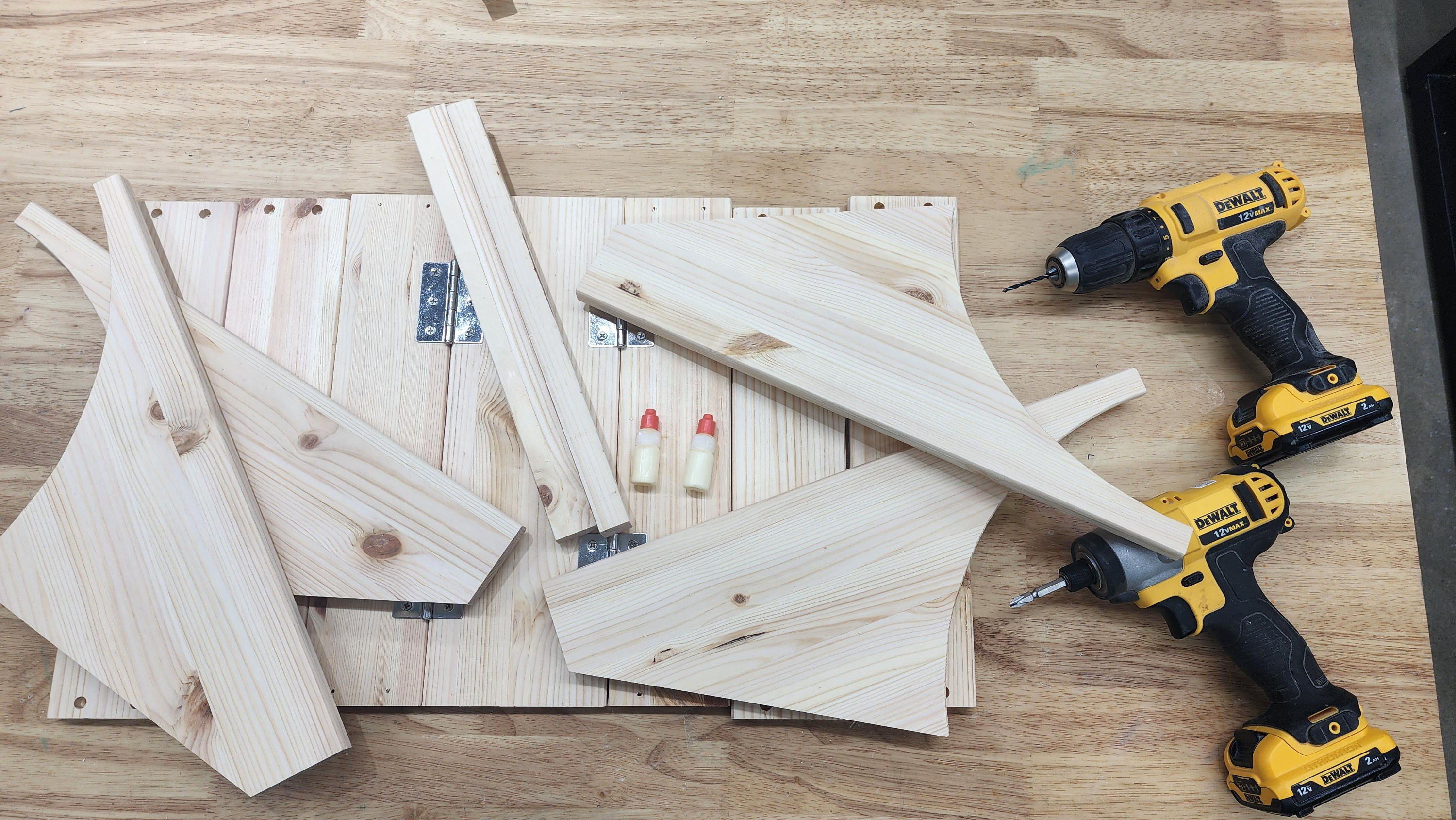 나무는 이미 사이즈별로 준비되어 있었고, 우리가 해야 할 일은 나무를 드릴로 박아서 테이블을 만드는 것이었어요. 생각보다 혼자 힘으로 박기 어려워서 옆에 있는 분께서 나무를 잡아주시고 드릴질을 했답니다.